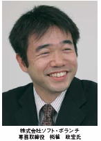 今回ご紹介するソフト・ボランチは、プロパティマネジメント業務を含めた賃貸不動産総合管理システムを提供している。「前職でもプロパティマネジメントシステムを手がけていたのですが、より使いやすいプロパティマネジメントシステムを開発したいと考え、会社を立ち上げました」と同社の藤本淳二代表取締役は語る。社員の約70%が不動産業務の経験があるSEで「不動産業務とシステムの両方を熟知した人材」が大きな強みだ。2003年5月に発売した最初の製品「PMVolante」は、プロパティマネジメントの業務に特化したユニークな製品だった。プロパティマネジメントという新しい課題に対応するための業務システムを、不動産業者向けに提供していたのだ。「ところが、実際にシステムの販売を始めてみると、家賃回収や契約管理などの日常管理業務もまとめてシステム化したいという声が予想以上に多いことがわかりました」(藤本氏)。こうした声に応えて2005年5月に発売されたのが、プロパティマネジメントに加えて日常管理業務もカバーした次世代不動産管理システム「PMVolante for RealEstate」である。