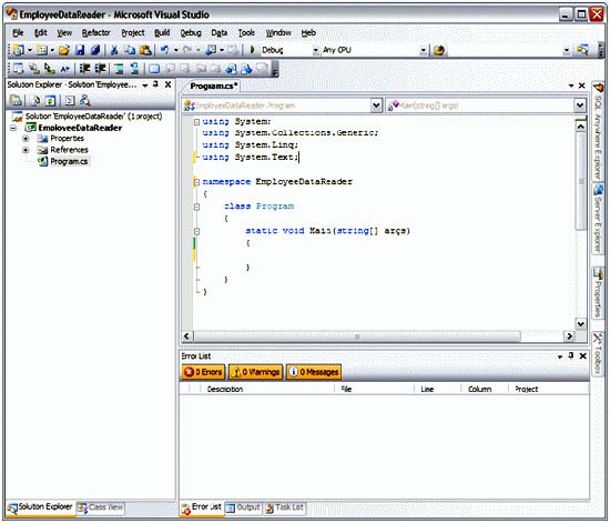 - d. [プロジェクト名] フィールドに EmployeeDataReader と入力します。