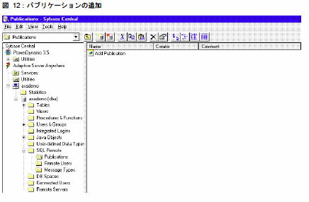f) パブリケーションを定義します。図 8 を参照してください。SQL Remote フォルダをダブルクリックします。[パブリケーション] をダブルクリックします。