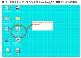a) Windows デスクトップ・マシンに Handheld_PC 同期ファイルというフォルダ (またはそれに相当する同期用フォルダ) が必要です。このフォルダは、ActiveSync のインストール時に作成されます (ActiveSync ソフトウェアのマニュアルを参照してください)。