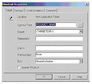 9. [Target] を <TARGETDIR> に設定して、ショートカットが Installation Directory 変数を指すようにします。