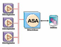 クライアント・アプリケーションは、ネットワーク・サーバが常駐するマシン以外のマシンに常駐できます。ネットワーク・サーバに接続できるクライアントの数は、Adaptive Server Anywhere (SQL Anywhere) ライセンス* と、ネットワークおよびサーバ・マシンの空き容量によって決まります。クライアントがデータベース・サーバに接続されると、無制限のデータベース接続数がそのクライアントに許可されます。