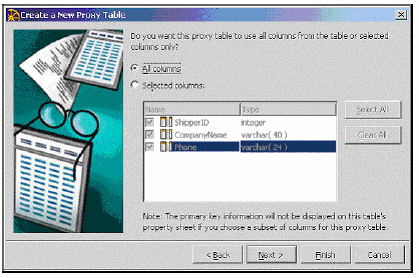 12. プロキシ・テーブルの [すべてのカラム] を選択し、[完了] をクリックします。