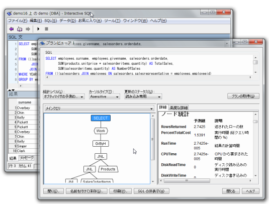 Interactive SQL は、SQL Anywhere (および Ultra Light)データベースに対してSQL文の実行、スクリプトのビルド、データベースのデータ表示などを実行できます。