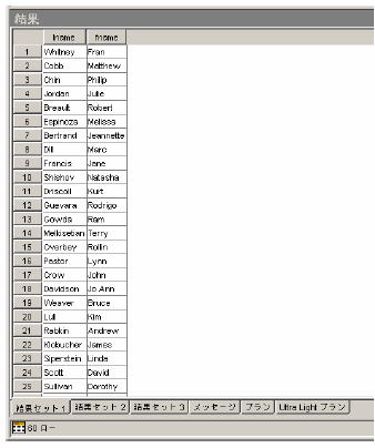 2 番目の結果セットを表示するには、[コマンド] ウィンドウに [RESUME] と入力して [実行] を押します。2 番目の結果セットが表示されたら、もう一度 [RESUME] を実行すれば 3 番目の結果セットが返されます。最後の [RESUME] でクエリの実行が完了します。