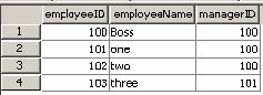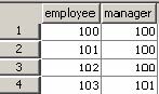 スキーマを修正する別の方法としては、自己参照テーブルを複数のテーブルに分割する方法があります。セットアップ例を使用した場合、Employee テーブルから manager カラムを削除して、新しいOrganization テーブルを作成します。Organization テーブルには、manager と employee という 2つの整数カラムを作成し、employeeID を使用して各従業員をそれぞれのマネージャに対応させます。