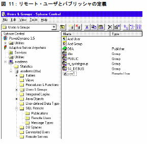 注意:[タイプ] の欄に注意してください。DBA ではパブリッシャ、user1 ではリモート・ユーザになっています。