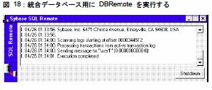“\Program Files\Sybase\ASA\dbremote.exe” -c “uid=dba;pwd=sql;dbf=\My Documents\Rep\user1.db;start=\Program Files\Sybase\ASA\dbsrv6.exe” と表示されます。
