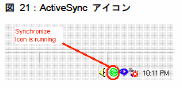 2. デスクトップのフォルダを同期してから、手順を進めてください。同期するには、ActiveSync を Desktop マシンで実行している必要があります。ActiveSync をダブルクリックし、[ファイル] メニューから [同期] を選択します。