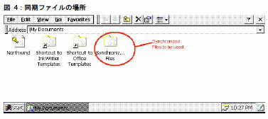 a) Windows デスクトップ・マシンに Handheld_PC 同期ファイルというフォルダ (またはそれに相当する同期用フォルダ) が必要です。このフォルダは、ActiveSync のインストール時に作成されます (ActiveSync ソフトウェアのマニュアルを参照してください)。