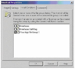 11. 次のように、[App File Group 1] の横にあるチェックボックスを選択して、アプリケーション・グループを使ってショートカットが作成されるようにします。