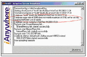 Adaptive Server Anywhere(SQL Anywhere) 8 サーバ・メッセージ“サイズ <size>のデータベース・ページがサーバの最大 <size> の設定と一致していません”について