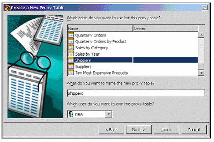 9. 新たに作成されたリモート・サーバを右クリックして、ポップアップ メニューから [プロキシ・テーブルの追加] を選択します。 [新しいプロキシ・テーブルの作成] ウィザードが表示されます。